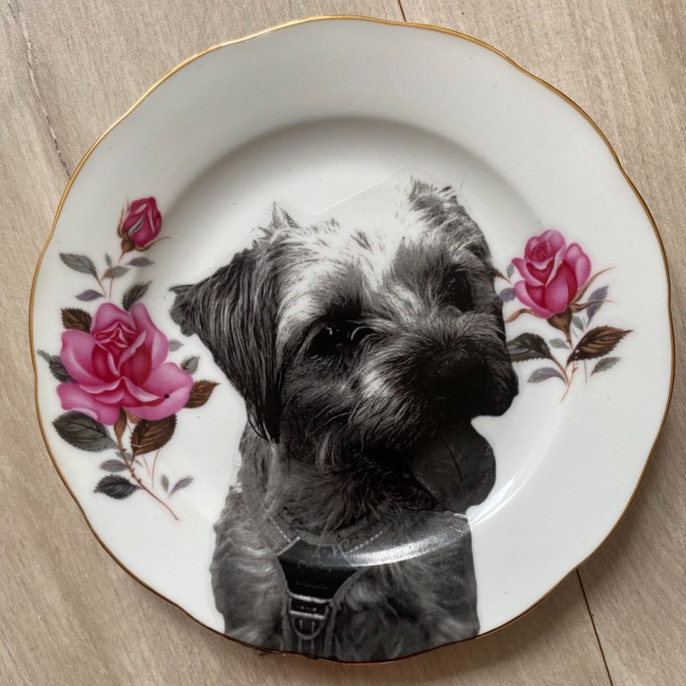 After you have contacted me with your ideas and images, I will show you the choice of plates/platters/saucers I have so that we can work out what works best. I like to keep photos and crockery from the same period together but the contrast of a modern photo with a very old plate can make a stunning statement piece.